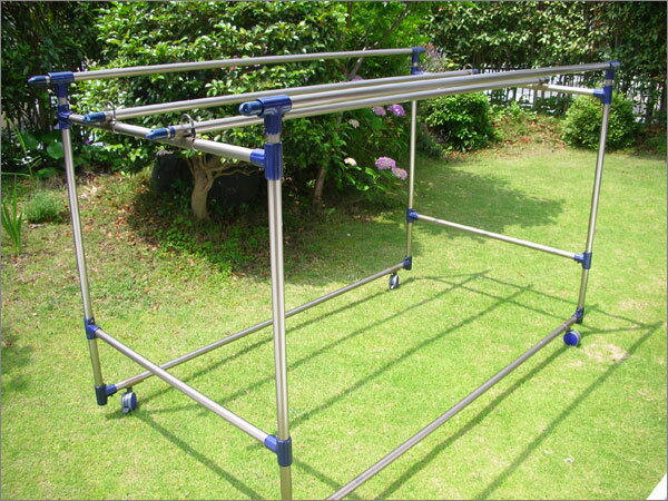 ステンレスハンガー LL_価格: 4,450円レビュー評価: 4.5 レビュー数:2 DL/Lタイプに比べて一回りおおきなサイズです。 本体 ( 790×410×440)mm 重量 約 1,050gピンチ数28(外周おみピンチあり)【左:LL 右:DL】 |